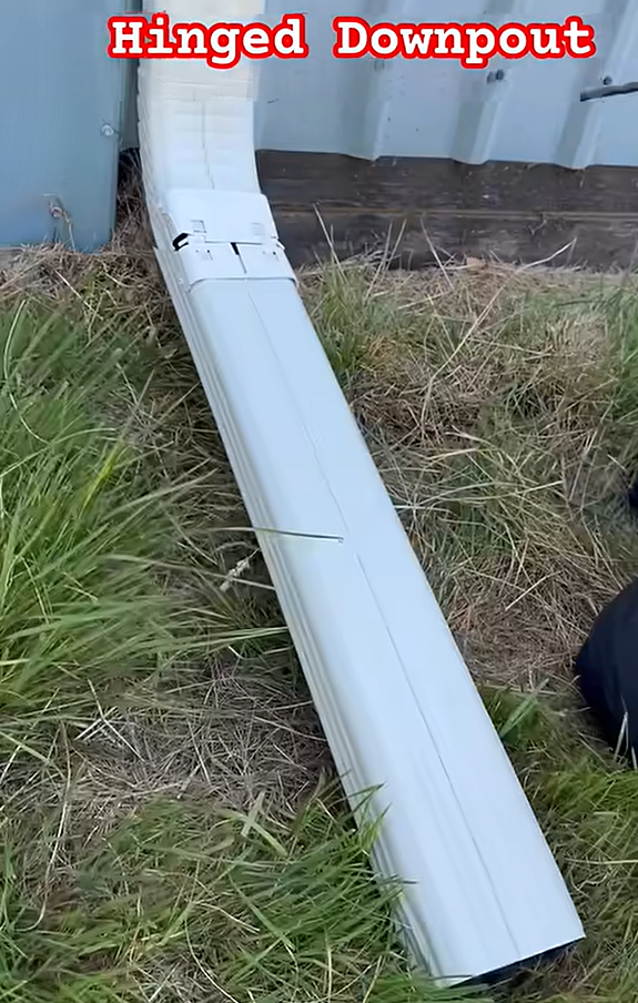 GutterAll Hinged Downspout Extension Kit installed on home showing flip-up design